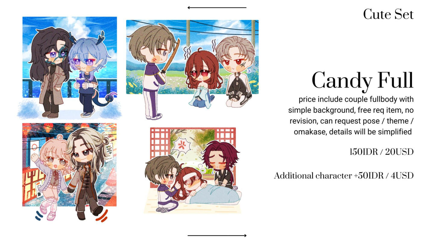 | Candy Set | Couple half body | 90IDR | 15USD | Skeb (omakase / surprise me). No Revision! (Add character would be +40k / 5USD) |